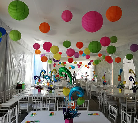 Desarrollamos la temática de tu evento de forma profesional e innovadora. No importa cuál sea el tema que elijas, tenemos una gran variedad de globos metálicos para acompañar todos los temas que puedas imaginar, y para realizar ambientaciones integrales utilizamos diferentes elementos, como globos, telas, papel, lámparas chinas, sombrillas japonesas, impresión en globos de látex, impresión en vinil, y formas especiales en coroplás.